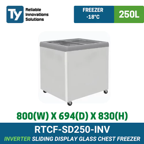 RTCF-SD250-INV Ty Sliding Display Glass Chest Freezer